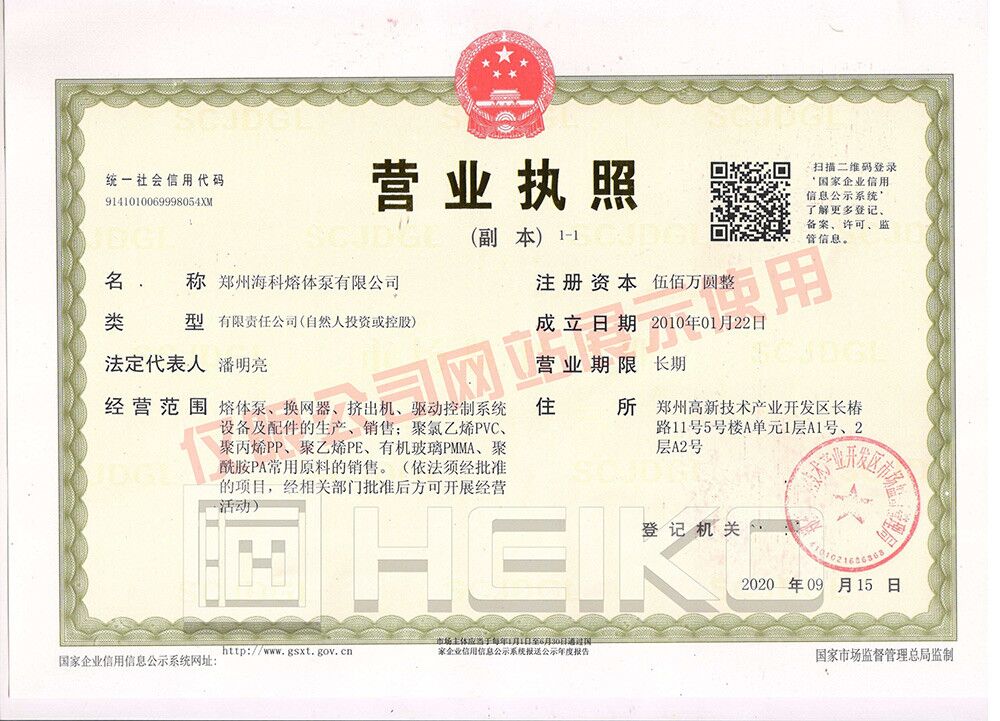 鄭州海科熔體泵有限公司是專業生產銷售熔體泵、高溫熔體擠出泵、換網器、高精度過濾器以及精密控制系統(PLC)等產品的企業。是國內專業生產熔體齒輪泵、換網器較早的企業之一。公司自主研發生產MP-S、MP-M、MP-H、MP-C等系列高溫熔體齒輪泵產品和HK-ACB、HK-SSP、HK-FSP、HK-DP等系列換網器產品。如今換網器和熔體齒輪泵已經廣泛應用在化纖、造粒、塑料薄膜、片材、板材、型材、管材、電線電纜、拉絲、復合擠出等生產線上,可加工的物料幾乎涵蓋了大部分高分子材料,如:PE、PC、PP、PVC、HIPS、PS、PA、TPUR、含氟聚合物、聚砜、聚酯、熱塑性彈性體、橡膠以及熱黏合劑等...